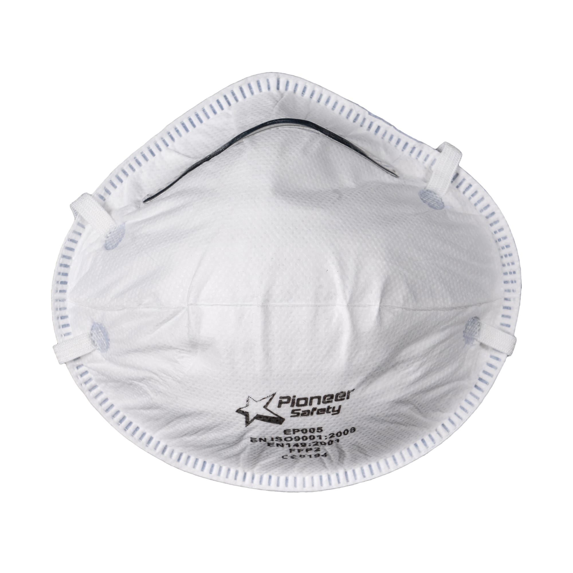 The mask includes an adjustable aluminium nose clip with foam backing for a snug, leak-resistant seal, and elastic straps that ensure a secure fit. Certified to EN 149:2001 and recognized under NRCS approval guidelines, it meets industrial safety standards for filtering efficiency and reliability. Sold in boxes of 20, the PIONEER FFP2 Dust Mask delivers both dependable protection and operational convenience.