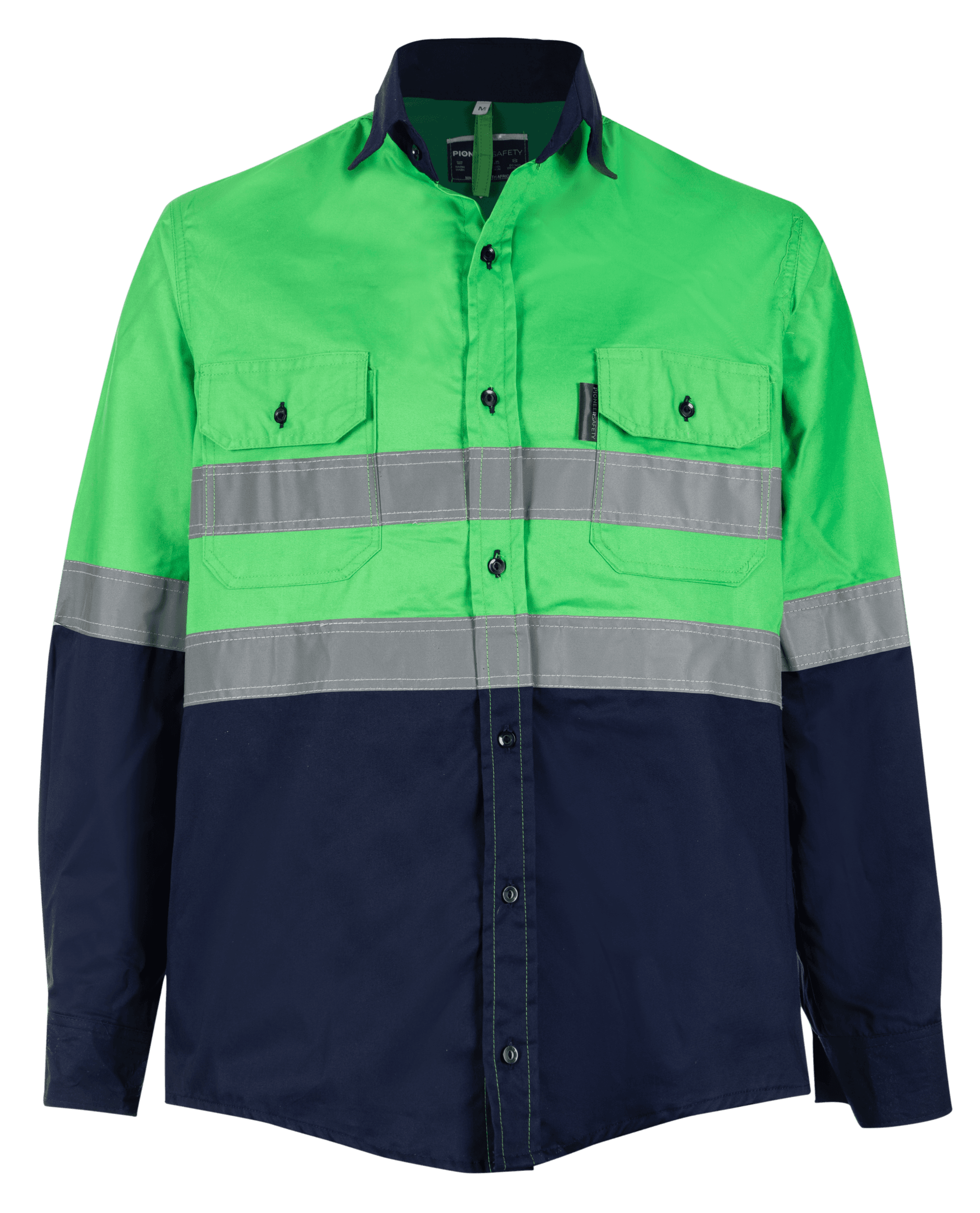 PIONEER NAVY/LIME HI-VIS SHIRT 100% COTTON LONG SLEEVE