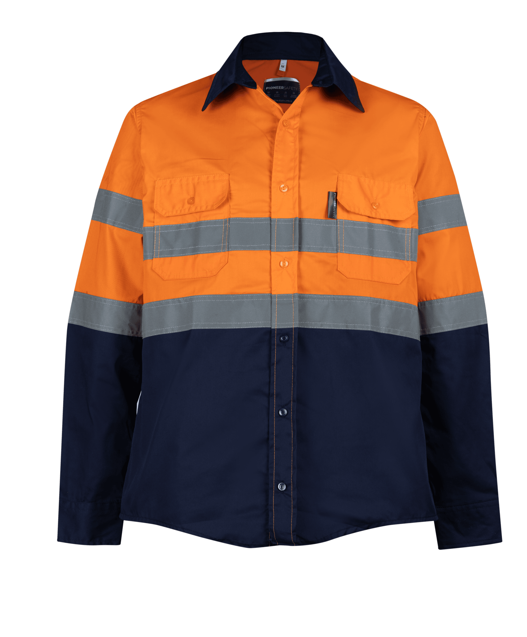 PIONEER NAVY/ORANGE HI-VIS SHIRT 100% COTTON LONG SLEEVE