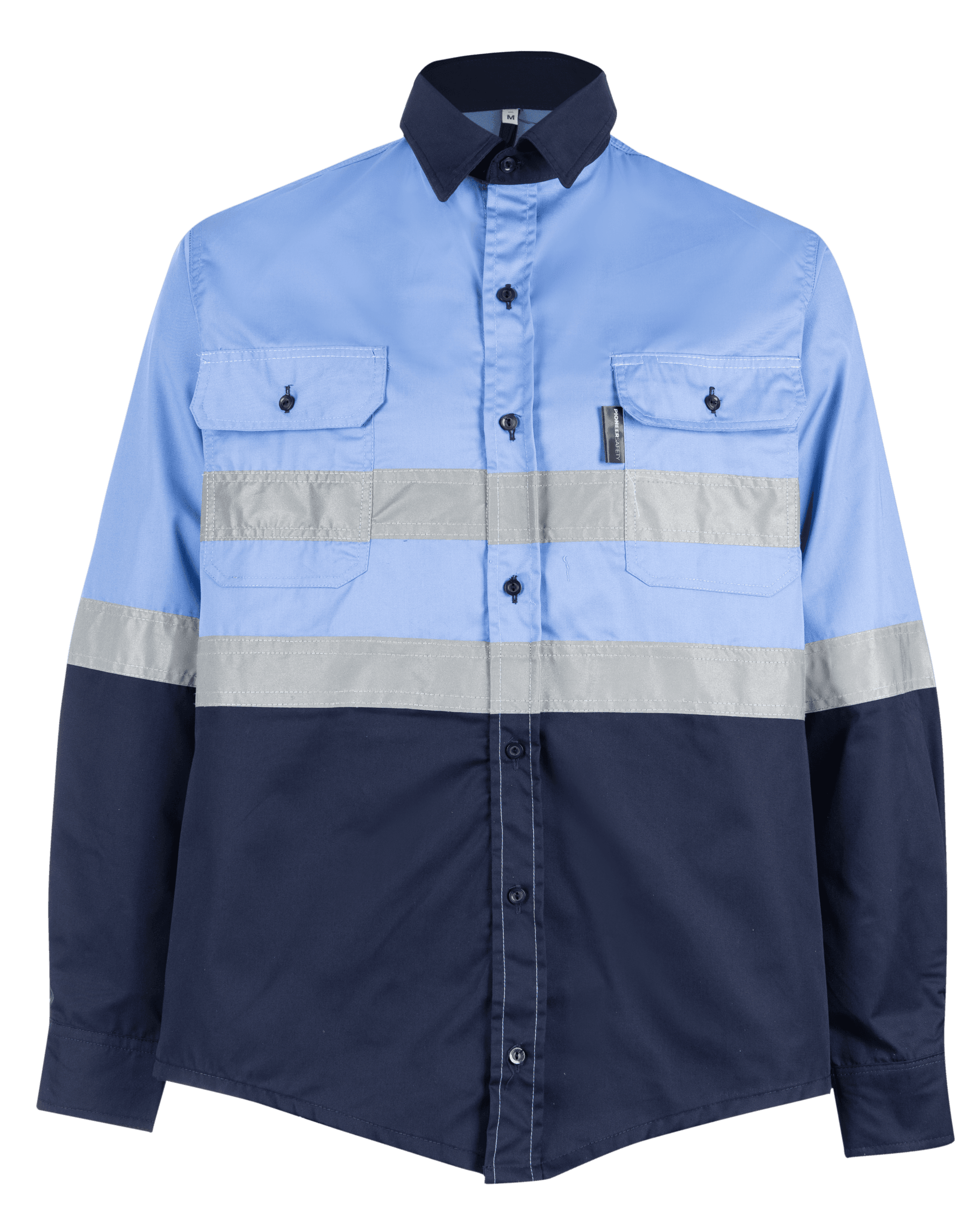 PIONEER NAVY/SKY BLUE HI-VIS SHIRT 100% COTTON LONG SLEEVE