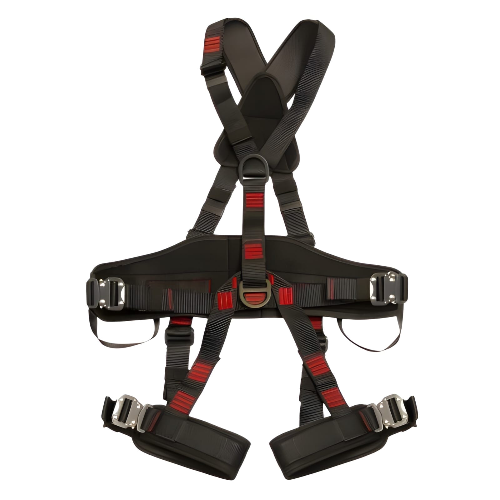 45mm webbing dorsal attachement point, adjastable leg & shoulder strapa with buckels,high density foam padding on shoulders,leg straps & waist belt.