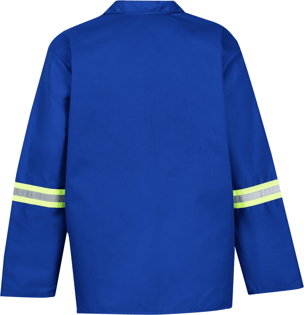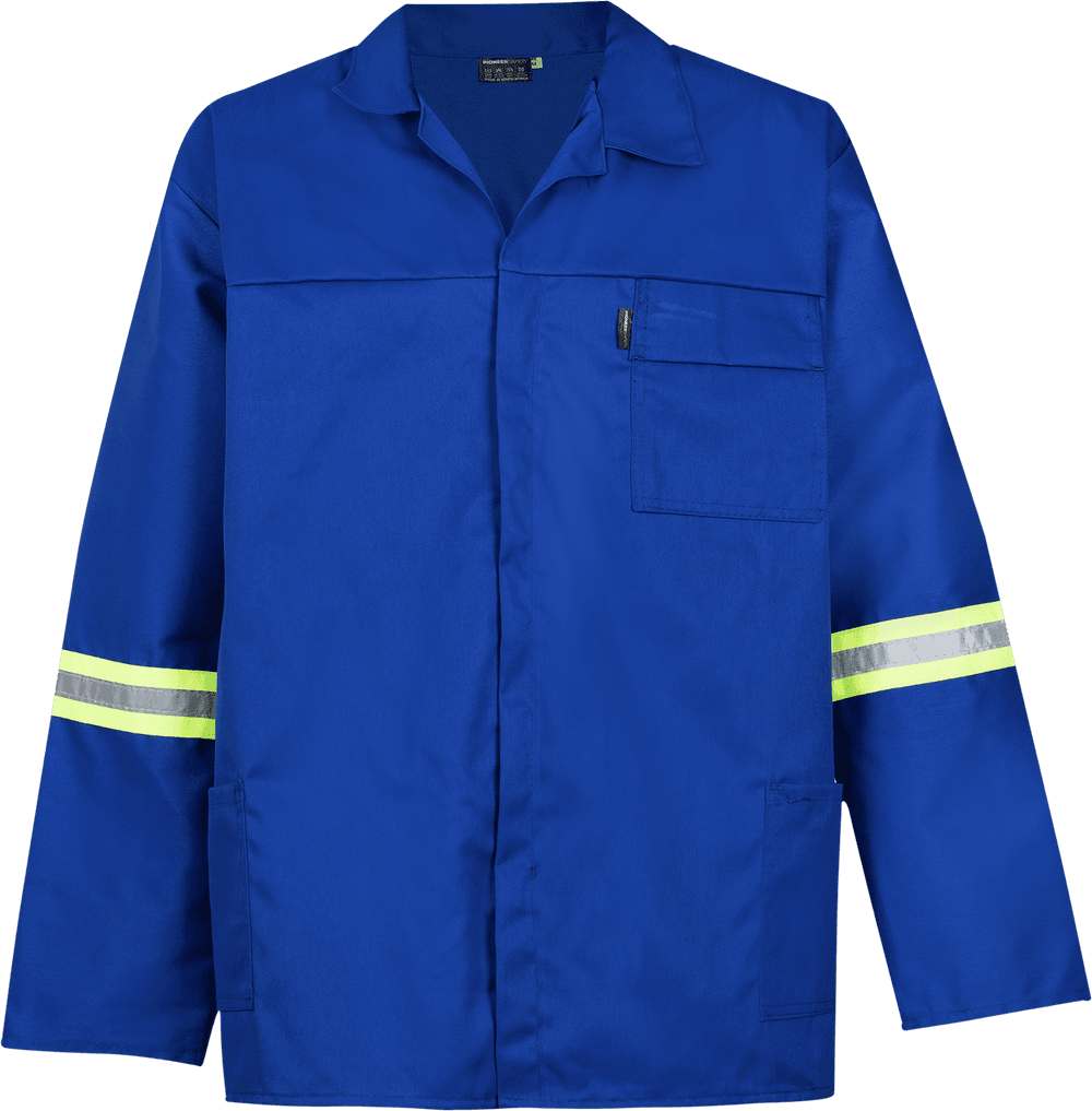 The jacket features a Moza chest pocket with top stitching, two side pockets, and a concealed metric zip, ensuring both practicality and a neat, professional appearance. Reinforced with triple stitching and an elasticated waistband, the suit is built to withstand industrial conditions while allowing ease of movement. Reflective tape enhances visibility, adding an extra layer of safety for workers in low-light or high-risk environments.