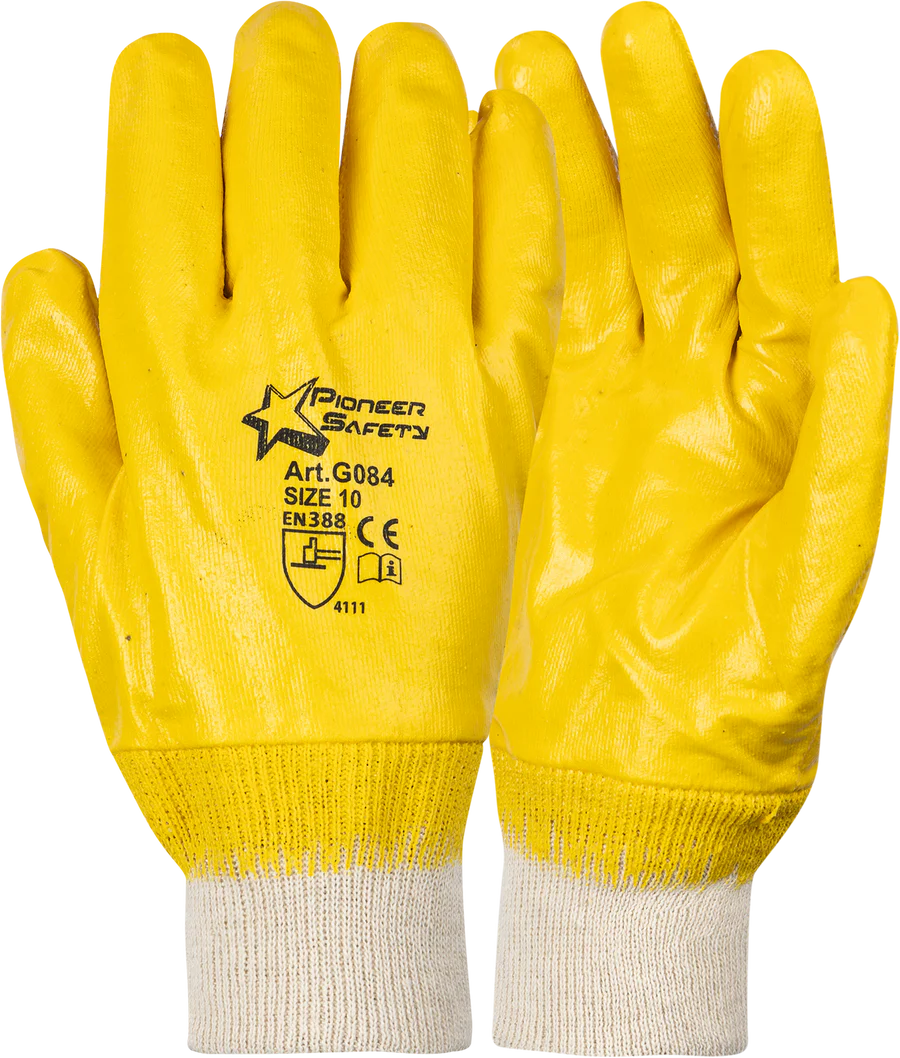 The Yellow Nitrile Fully Dipped Glove with Knit Wrist is engineered for professionals who require reliable hand protection, durability, and comfort in industrial, maintenance, and chemical handling environments. Made with high-quality nitrile, this glove offers excellent resistance to oils, chemicals, abrasions, and general wear, ensuring hands remain safe during demanding tasks.The full nitrile coating provides superior grip on tools, machinery, and materials, even in wet or slippery conditions, while the flexible knit wrist ensures a secure fit that keeps debris and liquids out. The ergonomic design allows natural hand movement, maintaining dexterity and precision for detailed work. The bright yellow color enhances visibility, improving safety in busy or low-light workspaces.Lightweight yet durable, the Yellow Nitrile Fully Dipped Glove with Knit Wrist is suitable for a wide range of applications, including assembly, chemical handling, industrial maintenance, and general manufacturing. Reinforced construction ensures long-lasting performance, while the combination of grip, flexibility, and wrist protection makes this glove a practical and reliable choice for professionals who demand safety, control, and comfort in challenging environments.